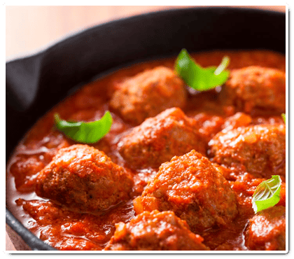 Finalmente, servimos las albóndigas calientes bañadas con su salsa.