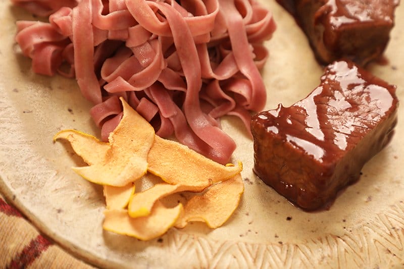 Agregar la cebolla y el resto de los vegetales, una vez bien dorados desglasar con vino tinto, hierbas aromáticas y pimienta. Agregar el agua o caldo de vacuno hasta que quede tapado y cubrir con papel aluminio.