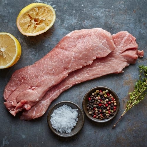 Las escalopas pulpa pierna cerdo se extraen de la parte de atrás del muslo, limita tanto con el costillar como con la cazuela. Tiene más grasa que la pulpa paleta y por ende, más sabor. Perfecto para saltear u hornear.